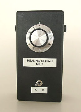 The Unit also features a fully adjustable power control, two outputs for both hot and cold water supplies, and a switch which allows selection of either the energies described above, or you can switch to "Rainbow Energy", the vibrations of all the colours of the spectrum, the joyous exultation of healing light, a non-specific cure all that is beneficial to everyone, whether they are healthy or not.