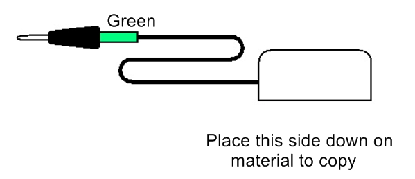 Copying: This version is fitted with an Input socket ( E ) into which you can plug in a special Pickup Sensor that you can place on pictures, writing, or on little bags of Herbs or Remedies to copy the vibrations.